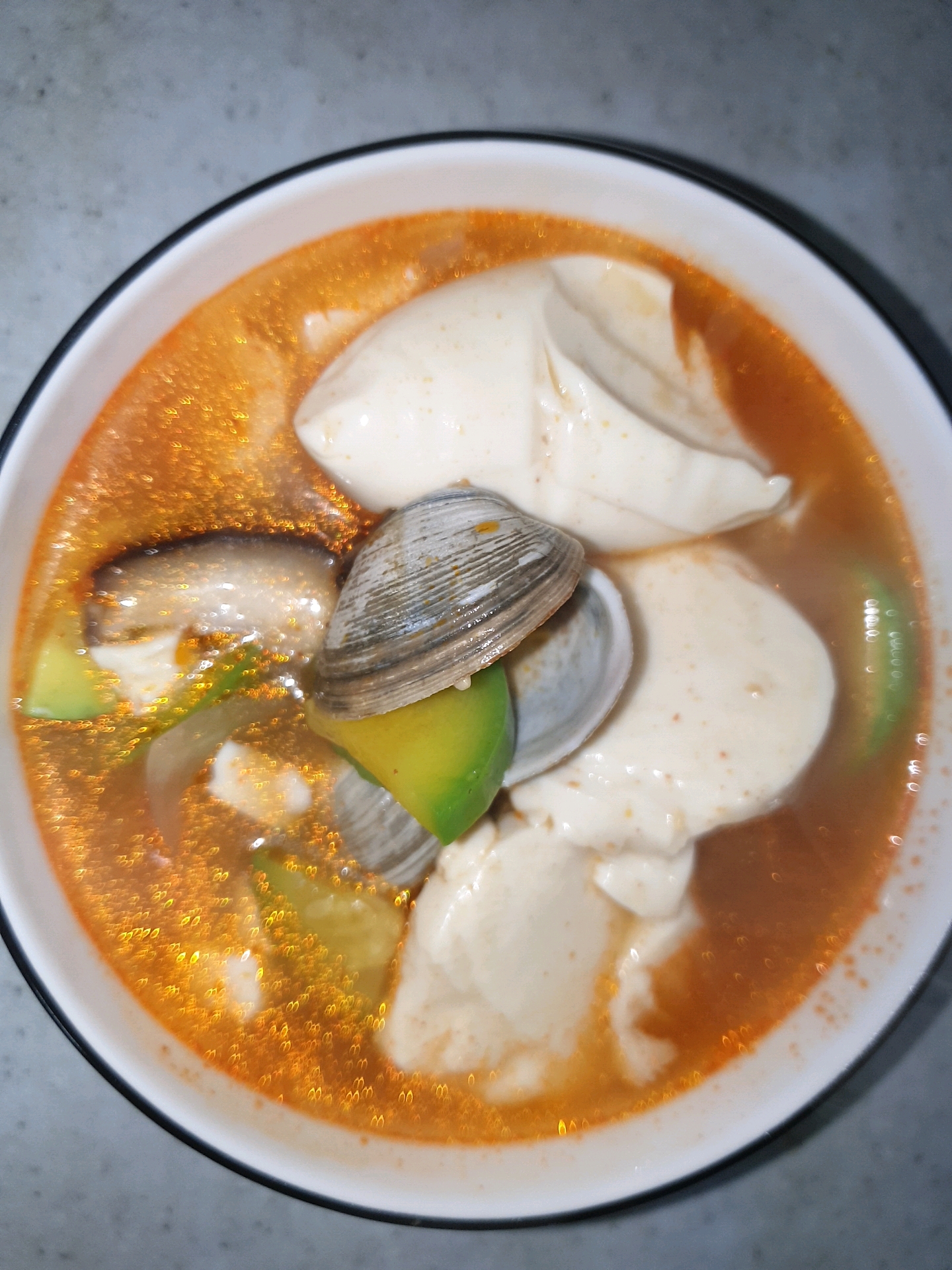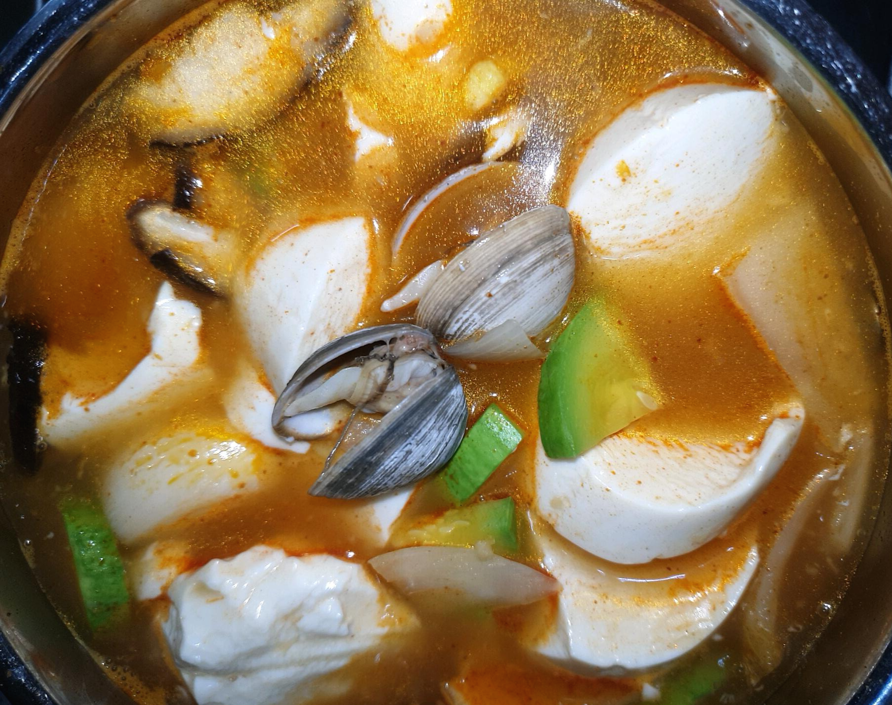 조개도 탱글탱글하고 순두부도 너무 부드러워요